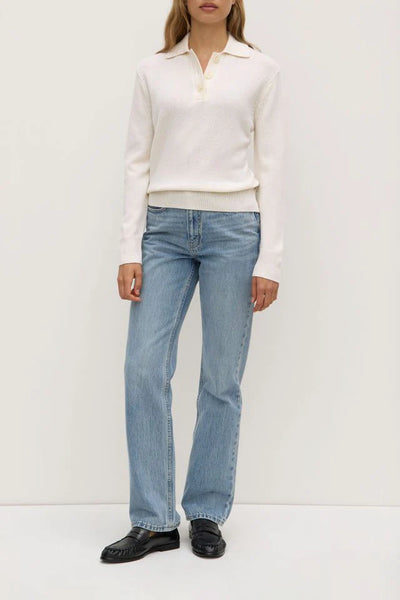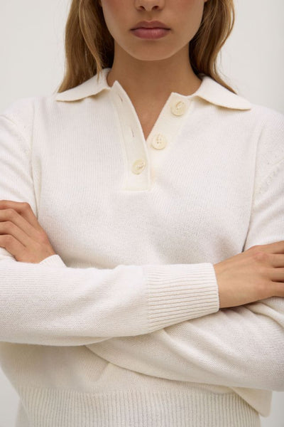 An elevated take on a classic silhouette, the Annabelle Knit Polo is crafted from a premium wool-cashmere blend for a luxuriously soft feel. Featuring a relaxed fit, open collar and refined ribbed trims, it drapes effortlessly for a laid-back yet sophisticated look. In a versatile cream hue, this knit is perfect for layering through the seasons.