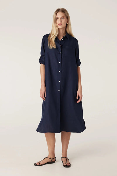 The Pure Linen Shirt Dress is a timeless best-seller crafted from a light and soft linen fabric. Detailed with an adjustable 3/4 length sleeve, a slight high low curved hem and relaxed fit.
