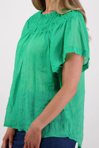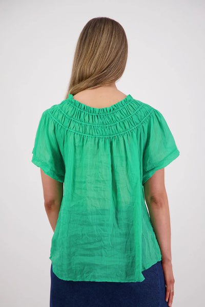 A versatile wardrobe essential this season, Sally is crafted from a beautiful Ramie in a range of colours. The elastic panels around the neck elevate and longer length looks great when worn out and is easily tucked in.