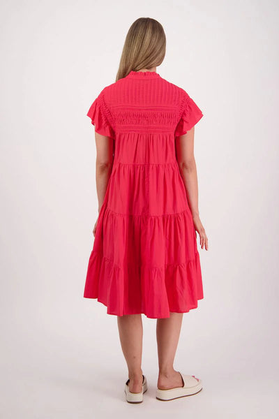 Sonia is the our boho-style summer dress, lightweight and breathable, perfect for warmer days and nights. A flattering below the knee length, 3-tier dress complete with signature ruffle sleeves.