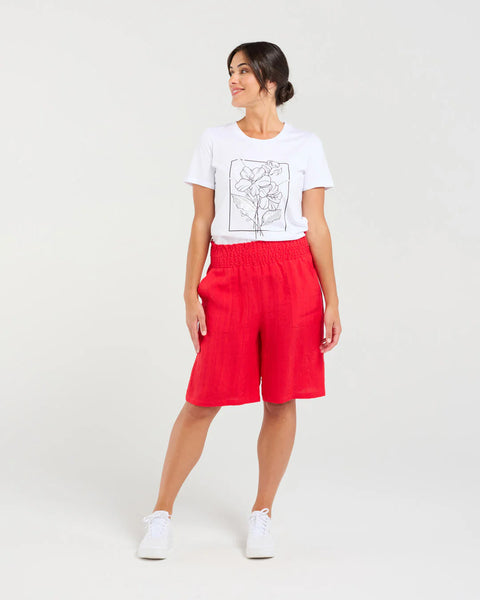 Get ready to step out in style with Blackstone's Darcy Shirred Waistband Shorts! Expertly crafted from a breezy blend of 85% linen and 15% viscose, these shorts promise both comfort and durability. The shirred waistband ensures a perfect fit, making it a versatile addition to your wardrobe. Whether you're heading to the beach or gearing up for a casual day out, these shorts will keep you looking cool and feeling comfortable all day long.