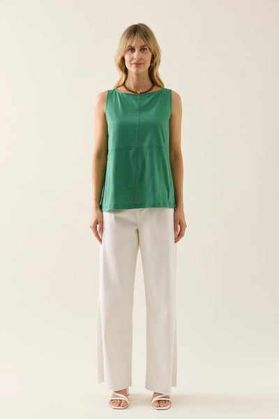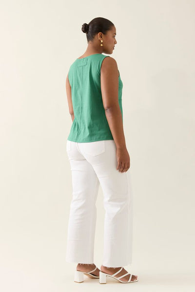 Crafted from 100% cotton, the Edith Tank features a boat neckline, four-panel front detail with topstitching, and a centre back seam with a patch detail and topstitching. A flattering sleeveless cut that fits beautifully at the armholes.