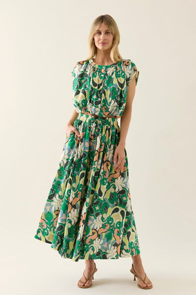 A wide A-line silhouette with beautiful drape, the Aurora Maxi Skirt is crafted from lightweight cotton voile. It features an elasticated waistband and drawstring with gold bead detail, internal side pockets and a wide hem.