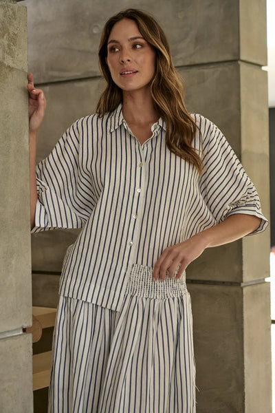 Made from 100% linen, the 3/4 sleeves and crisp collar offer a refined look, while the button-down front provides ease of wear. This shirt is designed to seamlessly transition from day to night with minimal effort.