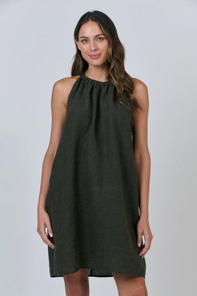 For sun-chasers and shade-dwellers alike, GA630 offers artisanal elegance in an easy-wearing silhouette. With gathered neckline and tie-back detail, this sleeveless dress showcases a sophisticated look that moves beautifully. Crafted from 100% linen, the flowing A-line cut skims the body, whilst the knee-length hem suits both beachside strolls and city escapades.