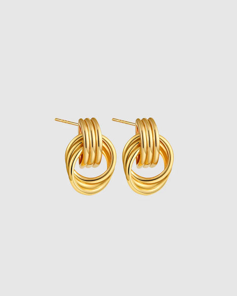 Elegant with a sculptural twist, the Millie Earrings in radiant gold feature an interwoven, knotted form that embodies modern minimalism.