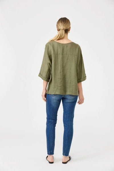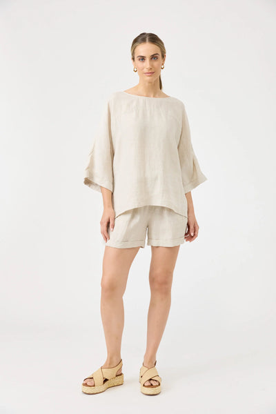A best-selling style, and for good reason. Features a crew neckline, wide 3/4 cuffed sleeves, and subtle seam detailing above the chest. Crafted from 100% linen for breathable comfort.